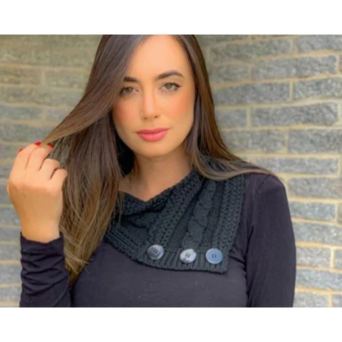 Descubra a Gola de Trico com Botões, um acessório indispensável para quem busca aquecer o visual sem abrir mão da sofisticação!