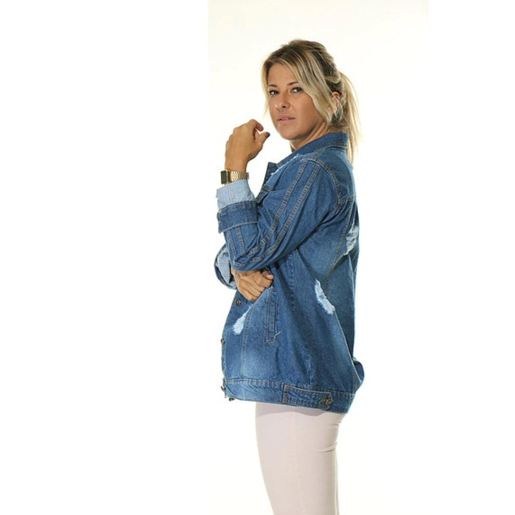 Transforme seu estilo com a Maxi Jaqueta Jeans Com Puidos! Esta peça incrível é a escolha perfeita para quem valoriza conforto e estilo no dia a dia.